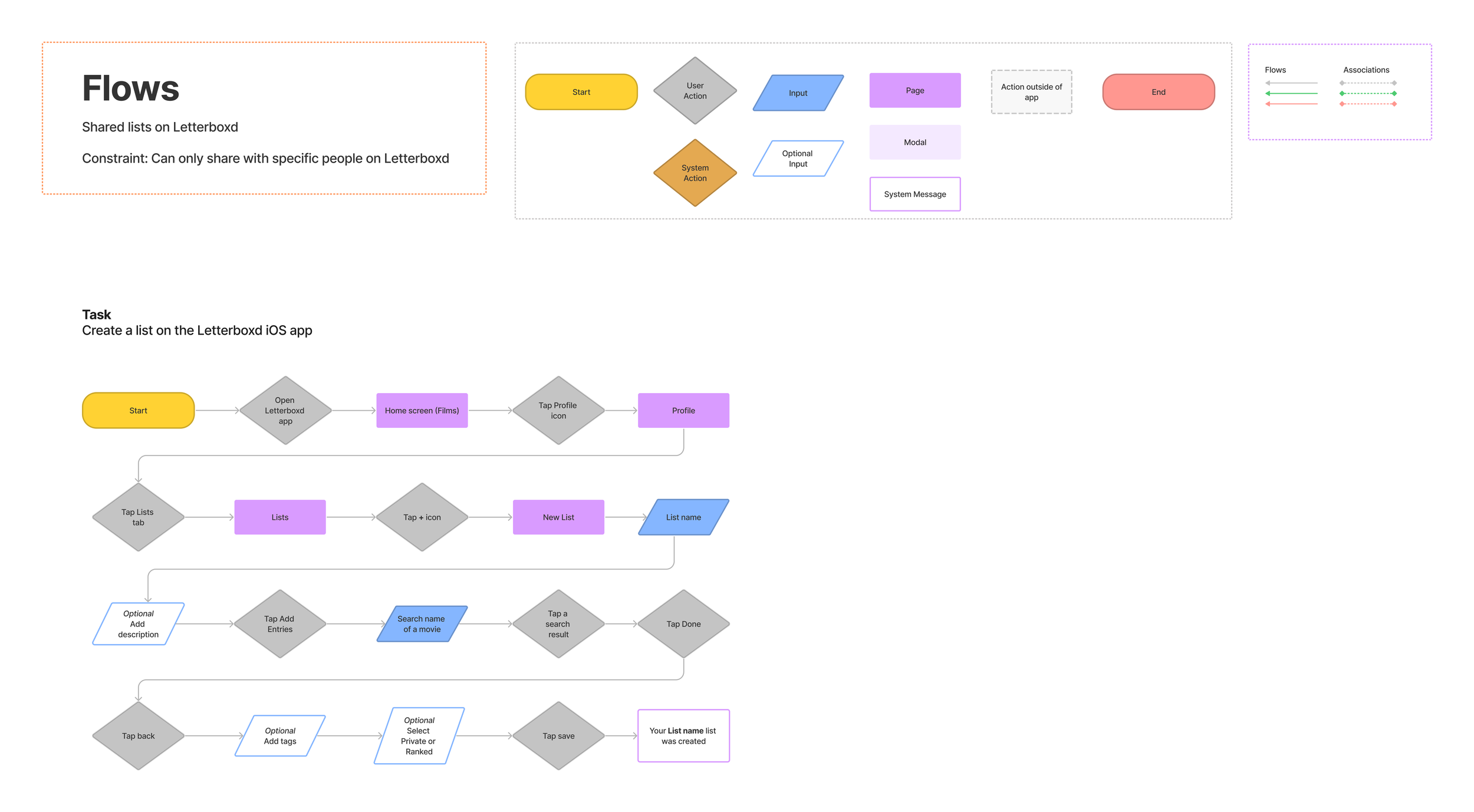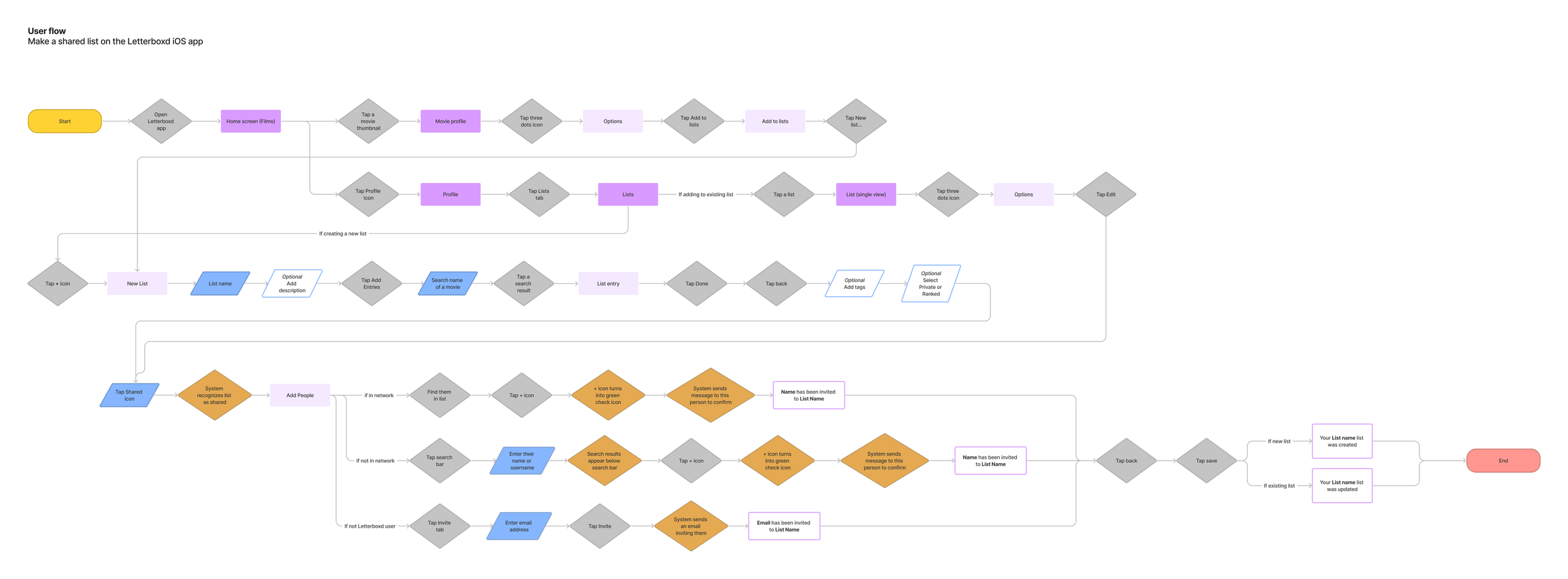 I created a User Flow to start to see how collaborative list creation would work by either creating a new list or editing an existing one.